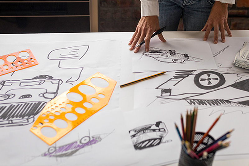 Ein neues Car Design ist für die kreativen Köpfe dahinter immer zuerst ein Schritt ins Unbekannte: In eine Zukunft, die noch darauf wartet, auf die Straße gebracht zu werden – und die Mobilität von Menschen auf der ganzen Welt ein Stückchen besser zu machen. Dieser erste Impuls wird zu einer Idee. Diese wird analog oder digital gezeichnet und im nächsten Schritt nach technischen und geometrischen Vorgaben visualisiert. Das Ziel: Das richtige Zusammenspiel von Linien, Größen und Proportionen zu finden.